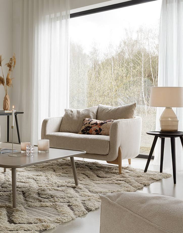 Schlichte, dezente Holzfüße betonen die luftige, skandinavisch inspirierte Formsprache von Jenny. Je nach Wunsch sind sie in verschiedenen Ausführungen erhältlich und runden das Design stilvoll ab.