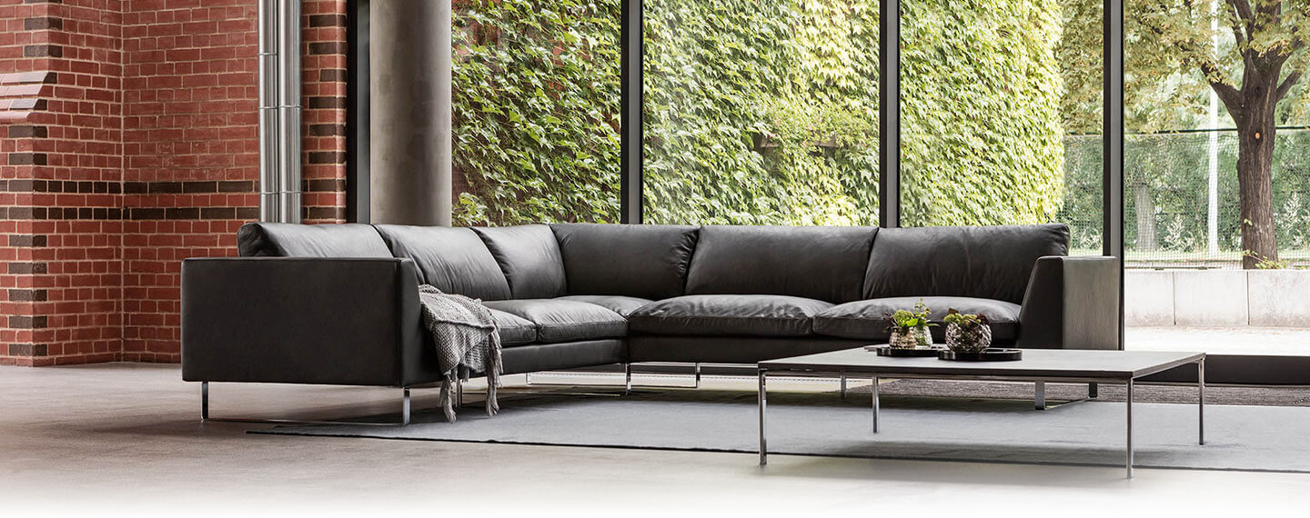 Das Sofa TOKYO ist in Stoff- und Lederbezügen erhältlich. Die Bezüge sind nicht abziehbar.